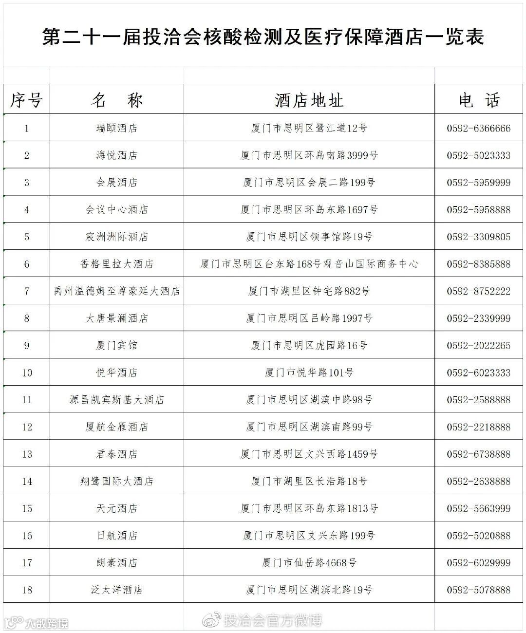 附件:第二十一届投洽会核酸检测及医疗保障酒店一览表