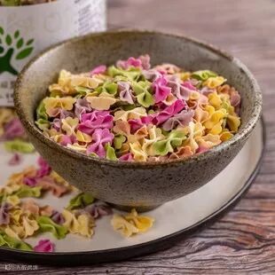 蝴蝶面看着色彩很鲜艳,但它没有添加任何色素,颜色全部取自蔬菜的原色。并且可以吃出蔬菜原本的味道,也无额外盐分,妈妈们可以放心给宝宝吃。