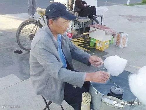 棉花糖因其呈雪白、蓬松的丝状,如棉花一般而得名。小时候,学校门口,公园等很多场所,都有小贩推着小车,制作棉花糖。然后车边总围着一群群孩子,焦急、好奇的观看着、等待着。一勺勺的颗粒状的白糖,在锅里高速旋转后就变成了丝状,棍子在锅里不停搅拌,不一会一团团棉花糖就出现了。然后孩子们拿上棉花糖,有说有笑、开心的离开。