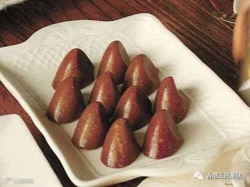 多为圆锥形,最外层是巧克力壳,中间是糖做的硬壳,最里面有液体酒。小时候喝不了真酒,吃一口酒心巧克力就蛮满足!