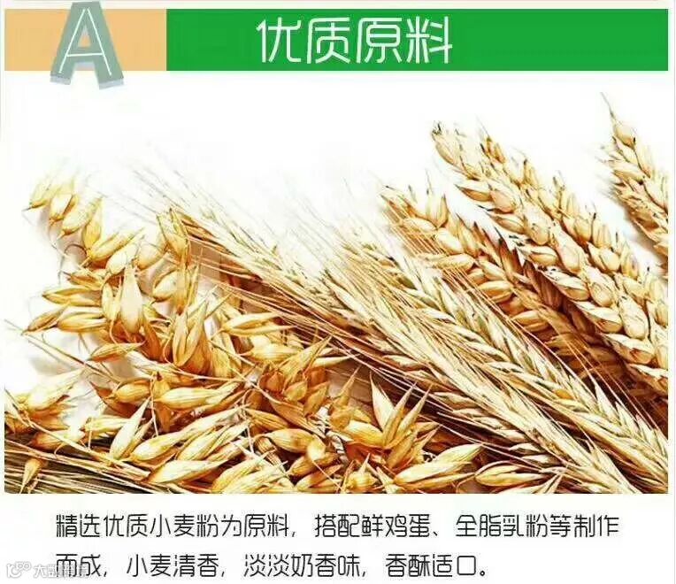 全麦烘培,美味营养(精选优质小麦粉,全脂奶粉等原料精心烘培而成,不添加防腐剂以及人工色素吃的更安心,浓郁的香味,让宝宝乐享美味)