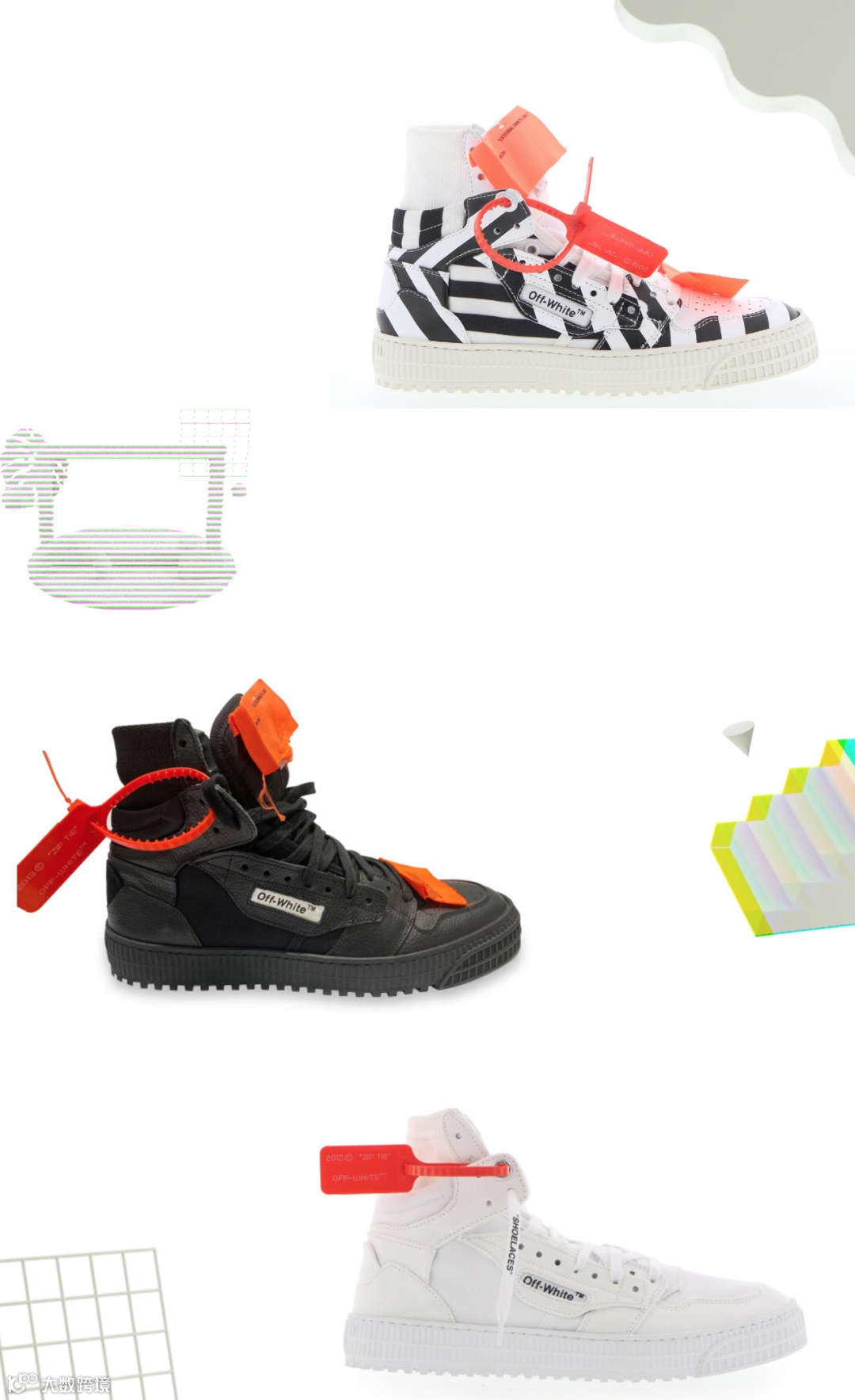 Off-White的全名是 OFF-WHITE c/oVIRGIL ABLOH ,意指“介于黑白之间的灰色地带”,代表着“混合街头美感和高级服装”。而说到Off-White的logo设计,其灵感来自于马路上常常出现的警示条纹,象征着从街头衍生出的品牌。