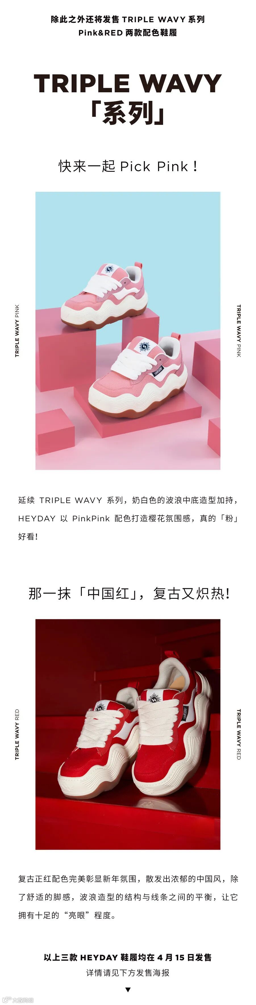 导读:4月15日三店齐发HEYDAY TRIPLE WAVY三款鞋履