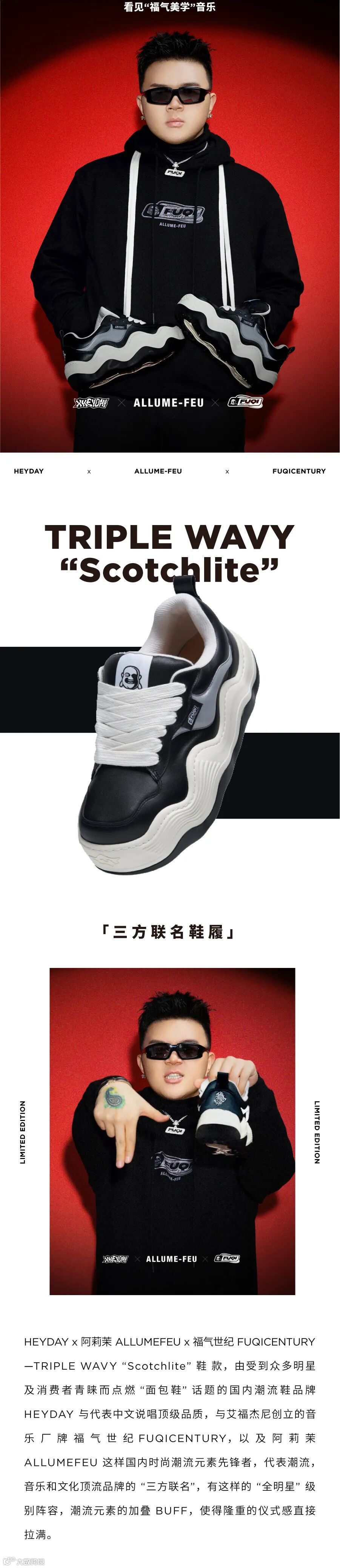 HEYDAY x ALLUME-FEU x FUQICENTURY三方联名以及TRIPLE WAVY系列两款鞋履发售