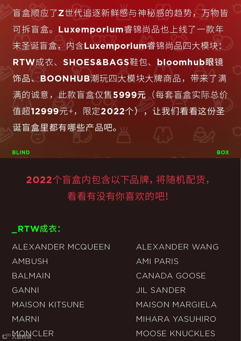 导读:内含RTW成衣、SHOES&BAGS鞋包、BLOOMHUB眼镜饰品、BOONHUB潮玩四大模块商品