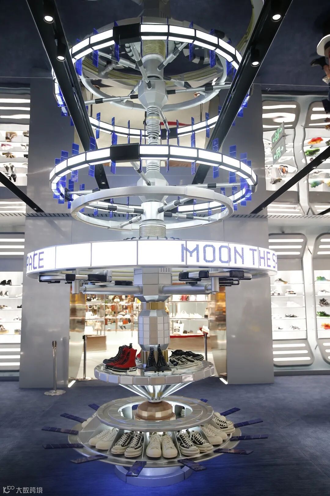 Luxemporium 睿锦尚品成都王府井科华店此次也是将 Moon The Space 潮流区域进行了升级改造。从外观看,整个区域形似一艘巨大的 UFO 蛰伏在店内。步入其中,你仿佛来到了神秘的科幻世界,一个形似宇宙空间站的装置引入眼帘。