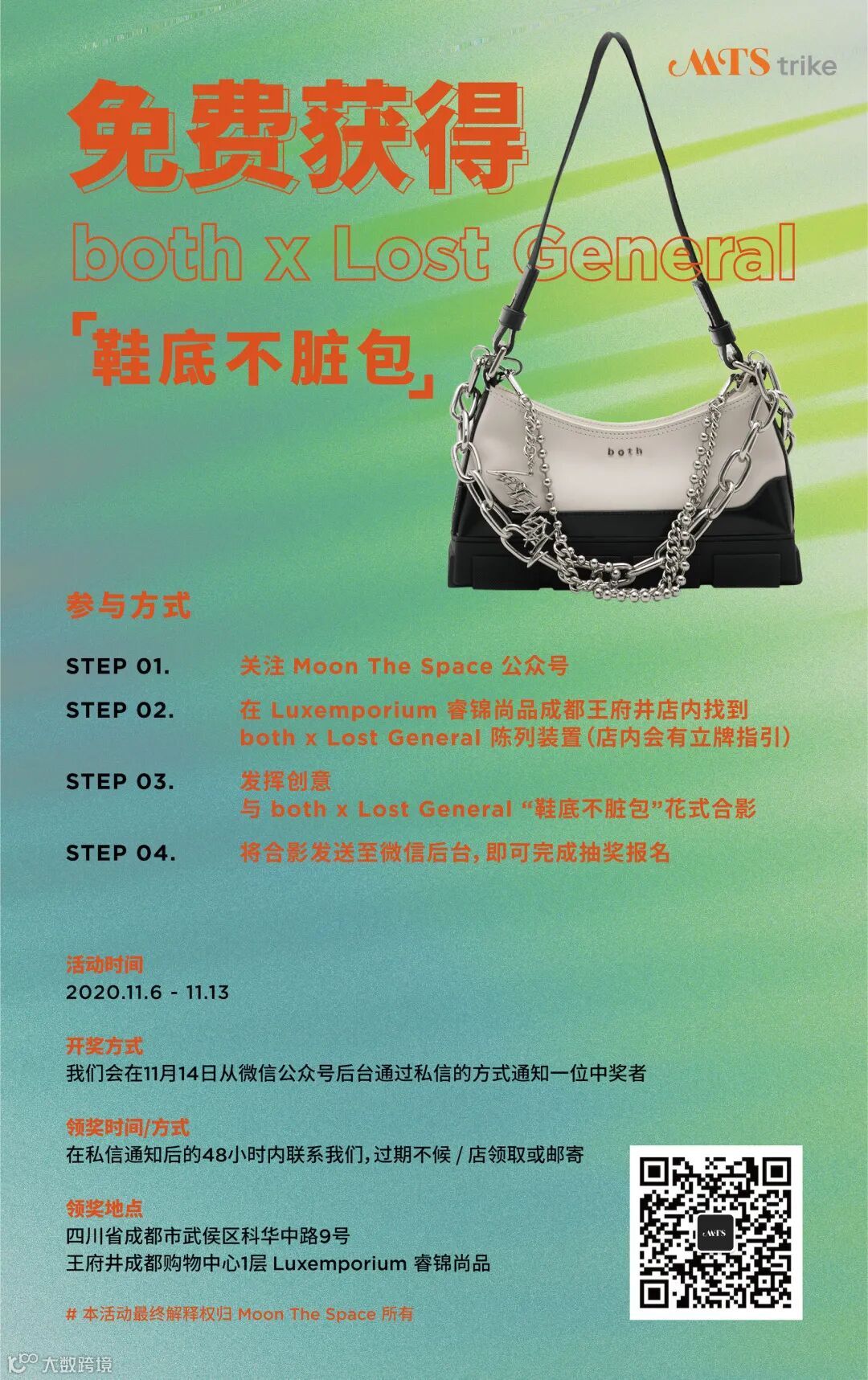 同时,在此次 Luxemporium 睿锦尚品成都王府井店开业之际,我们也在店内还特别发起了合影打开活动。你有机会免费获得一只红遍各大社交平台的“鞋底不脏包”。