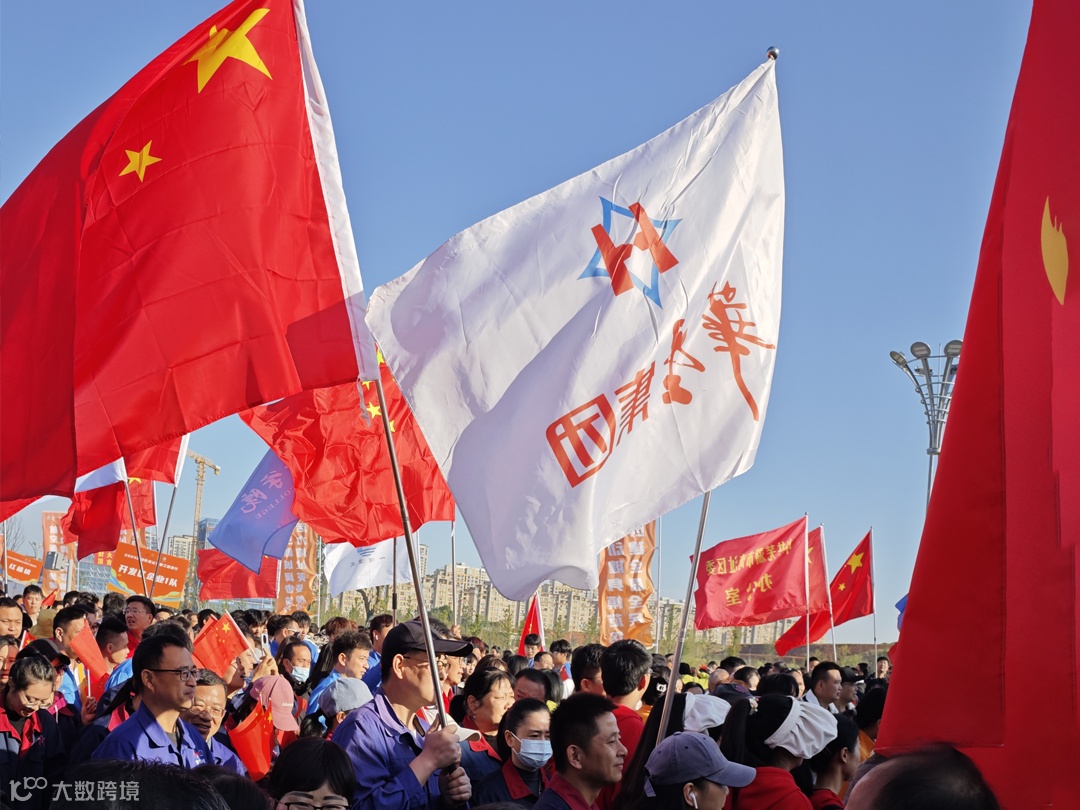 上午8时,区企事业单位2200多人组成的44支方阵队伍,齐聚九子湖公园西广场。活动开始前进行暖场表演及热身活动。