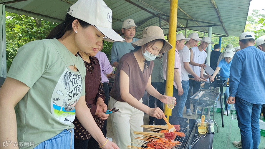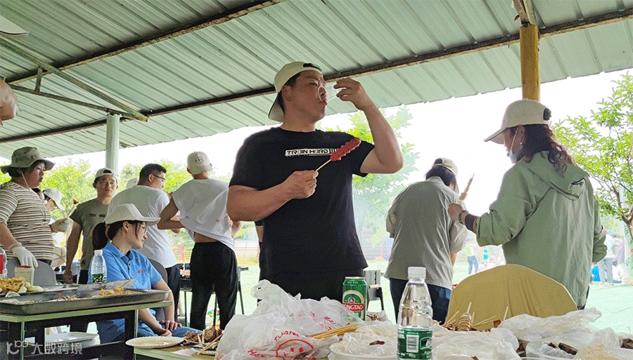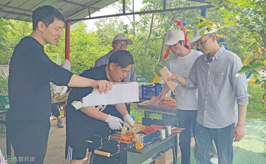 午餐是自助户外烧烤,行政部准备了丰富的烧烤食材,荤素搭配营养全面。同事们熟练地生火加炭、架起烧烤网,忙得不亦乐乎。一会儿,炊烟袅袅,趁着旺盛的炭火食物开始上架,娴熟的手法翻面,撒上椒盐孜然,刷上烧烤酱,散发着阵阵香味,美味扑鼻而来,很快桌子上就摆满了各式各样的荤素菜。烧烤中,同事们彼此协作,烧制美食,推荐自己喜欢的串串,聊自己喜欢的味道……尽情体验远离城市喧嚣,回归自然本色。
