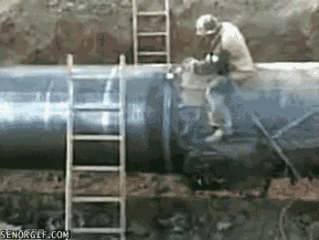 在管道检修时,工人不经批准,在压力的管道上从事焊接、紧螺丝等工作。