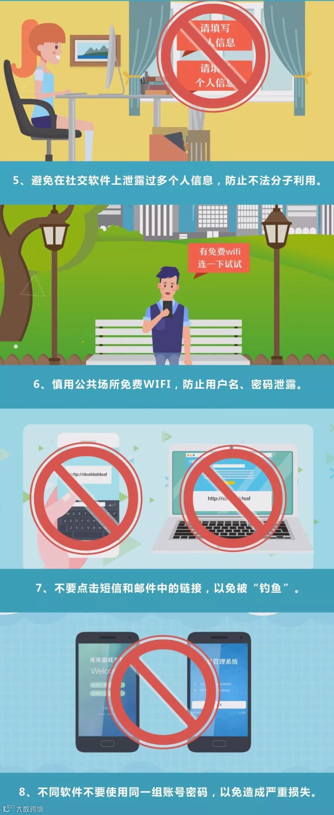 六、加强宣传,提高网民对钓鱼、诈骗等网络违法和不良信息的识别判断能力,加强网民对网络智能终端的了解和应用水平,强化个人信息保护意识,防止个人信息泄露。