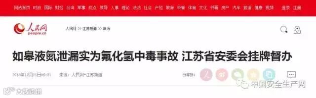 企业和镇政府联手瞒报剧毒腐蚀物泄漏,江苏省安委会挂牌督办如皋“12•18”事故