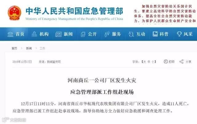 河南商丘一企业因违规操作发生火灾 11人死亡