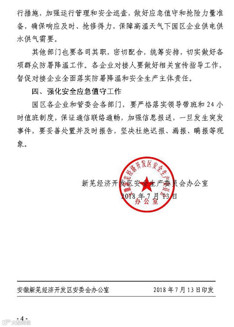 突出抓好以防署降温、防汛、防火防爆、防触电、防中毒、防雷击等重点的各项工作,深入排查整改安全隐患。