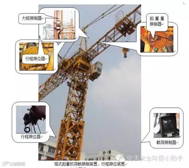3、当吊钩、起重小车、起重臂等运行至限定位置时,触发限位开关切断上升、前进或旋转动力源。(GB6067.1-2010第9.2条)