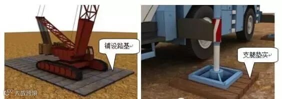 3、轮式起重机作业前需将支腿垫实和调整好。(JGJ 33—2001第4.3.4条)