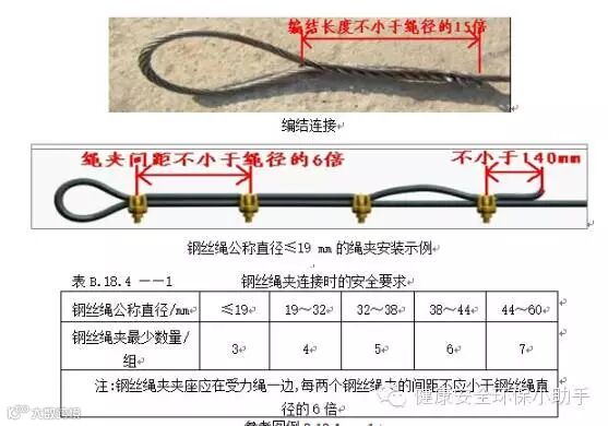 ★ 索具采用编结连接时,编结部分的长度应符合规范要求;采用绳夹连接时,绳夹的规格、数量及绳夹间距应符合规范要求。