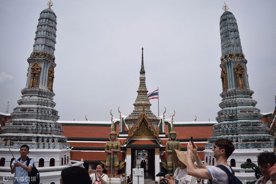 大皇宫前合影。泰国的大皇宫汇集了泰国建筑,绘画,雕刻和装潢艺术的精粹。