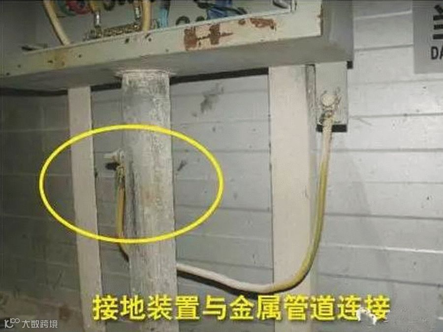 排查依据:GB 50169-2006《电气装置安装工程质量检验及验收规范》3.1.3:接地装置不得与金属管道、建筑物、设备的构建有金属的连接。