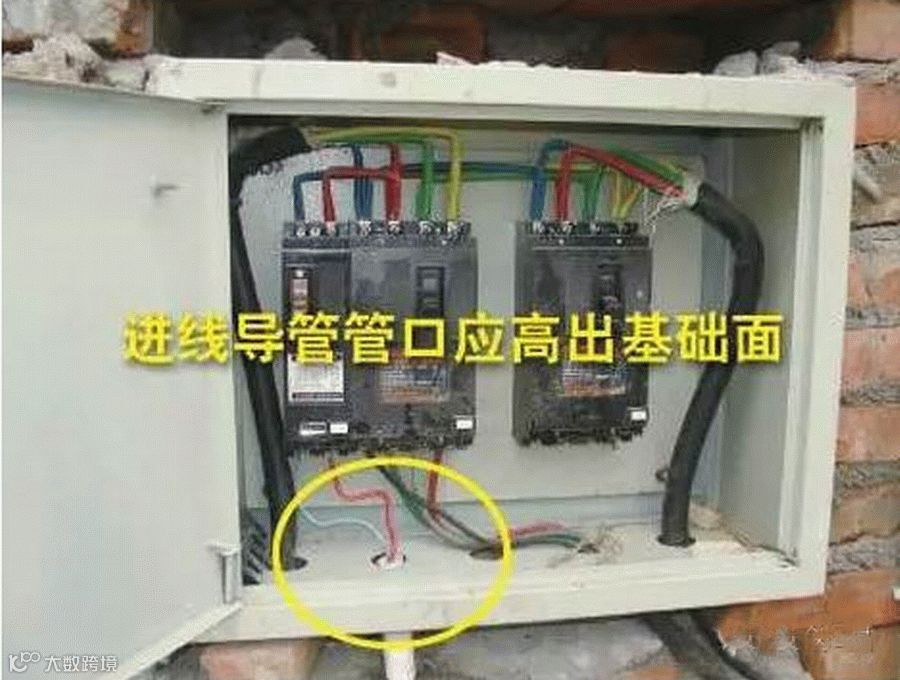 排查依据:GB 50303-2002《建筑电气工程质量验收规范》14.2.5 室内进入落地式柜、台、箱、盘内的导管管口,应高出柜、台、箱、盘的基础面50~80mm。