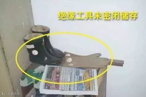 排查依据:DB 11527-2008《变配电室安全管理规范》5.18.5 绝缘靴、绝缘手套应存放在密闭的橱内,并与其他工具一表分开存放。