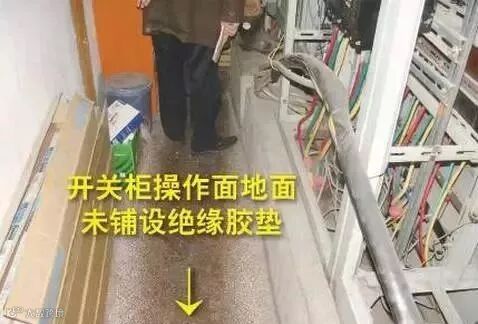 排查依据:DB 11627-2008《变配电室安全管理规范》5.3 变配电室变压器、高压开关柜、低压开关柜操作面地面应铺设绝缘胶垫。
