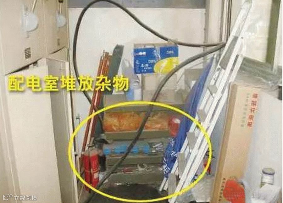 排查依据:GB/T 13869-2008《用电安全导则》6.5:一般环境下,用电产品以及电气线路的周围应留有足够的安全通道和工作空间,且不宜堆放易燃易爆和腐蚀性物品。