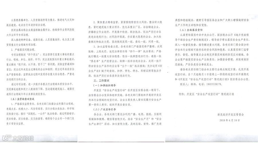 时间:自今年5月至10月在开发区范围内开展为期半年的“安全生产攻坚行动”。
