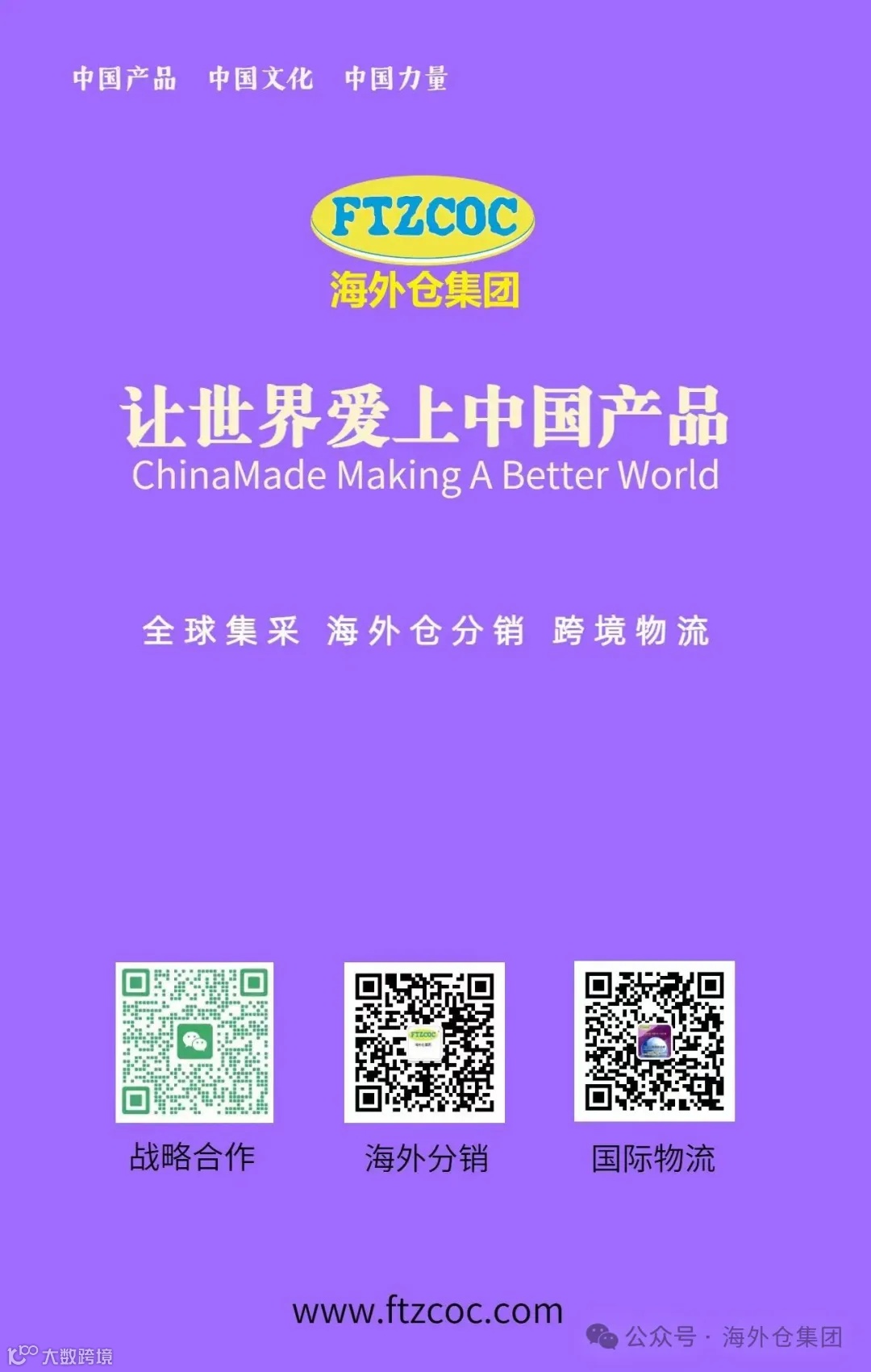 海外仓集团秉行海外仓分销、全球直采、跨境物流三大运营服务核心,构建《FTZCOC 跨境电商公共海外仓》共同体,打造数字海外仓和数字本土化服务管理系统,建⽴集展、仓、贸、配于⼀体的数字化综合服务解决⽅案的智慧平台,专业服务中国企业品质产品全球布局,支持跨境电商全球化可持续发展。