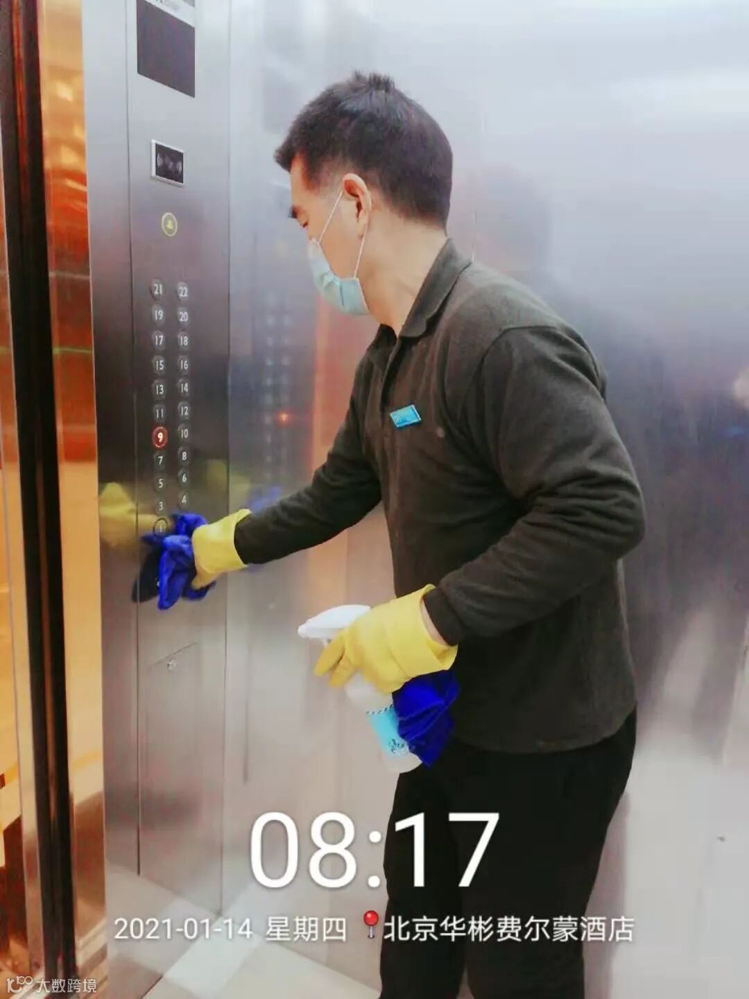 对大厦重点及公共区域进行消毒灭菌、及时清运垃圾杂物、专用废弃口罩回收等等。保洁人员每天对大厦楼道、电梯、公共区域进行酒精擦拭消毒,并对垃圾箱、门把手、电梯按钮、卫生间以及空调新风机柜等公共区重点部位进行高频消杀,筑起安全健康舒适的城墙。