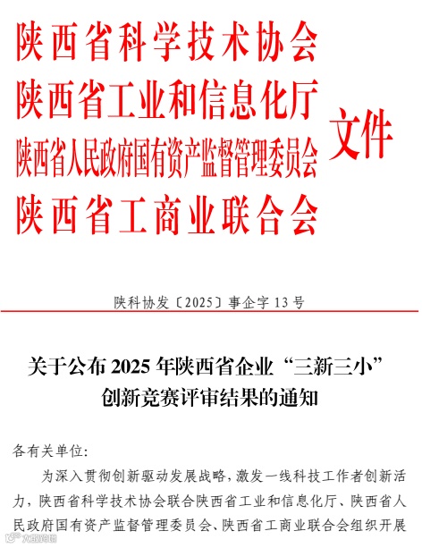 近日,2025年陕西省企业“三新三小”创新竞赛评审结果正式揭晓。公司下属企业澳华公司和科技公司两个项目脱颖而出,分别荣获二等奖和三等奖。