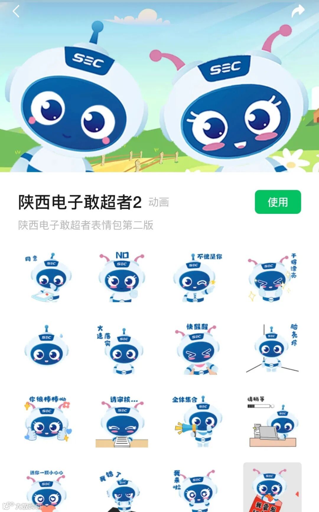 2.在搜索框内输入【陕西电子敢超者2】,找到表情包即可下载使用。