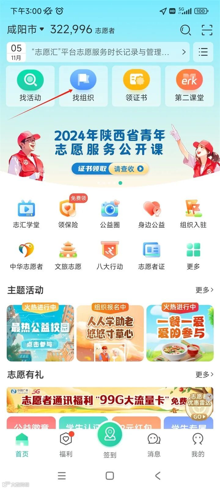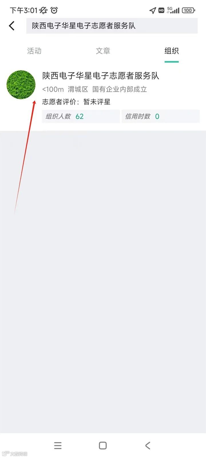 第三步:点击右上角搜索“陕西电子华星电子志愿者服务队”