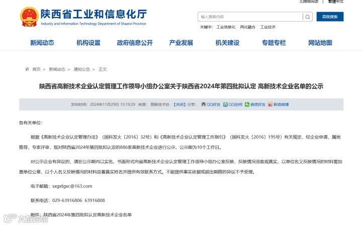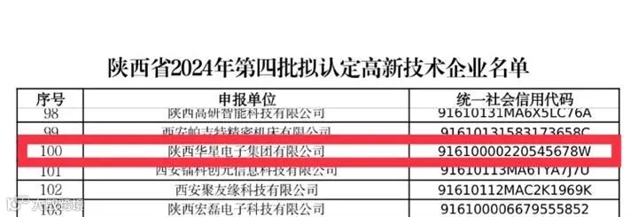 近日,陕西省工业和信息化厅发布了《关于公示陕西省2024年第四批拟认定高企技术企业名单的公示》,华星电子名列其中,顺利通过2024年度第四批“高新技术企业”复审认定。