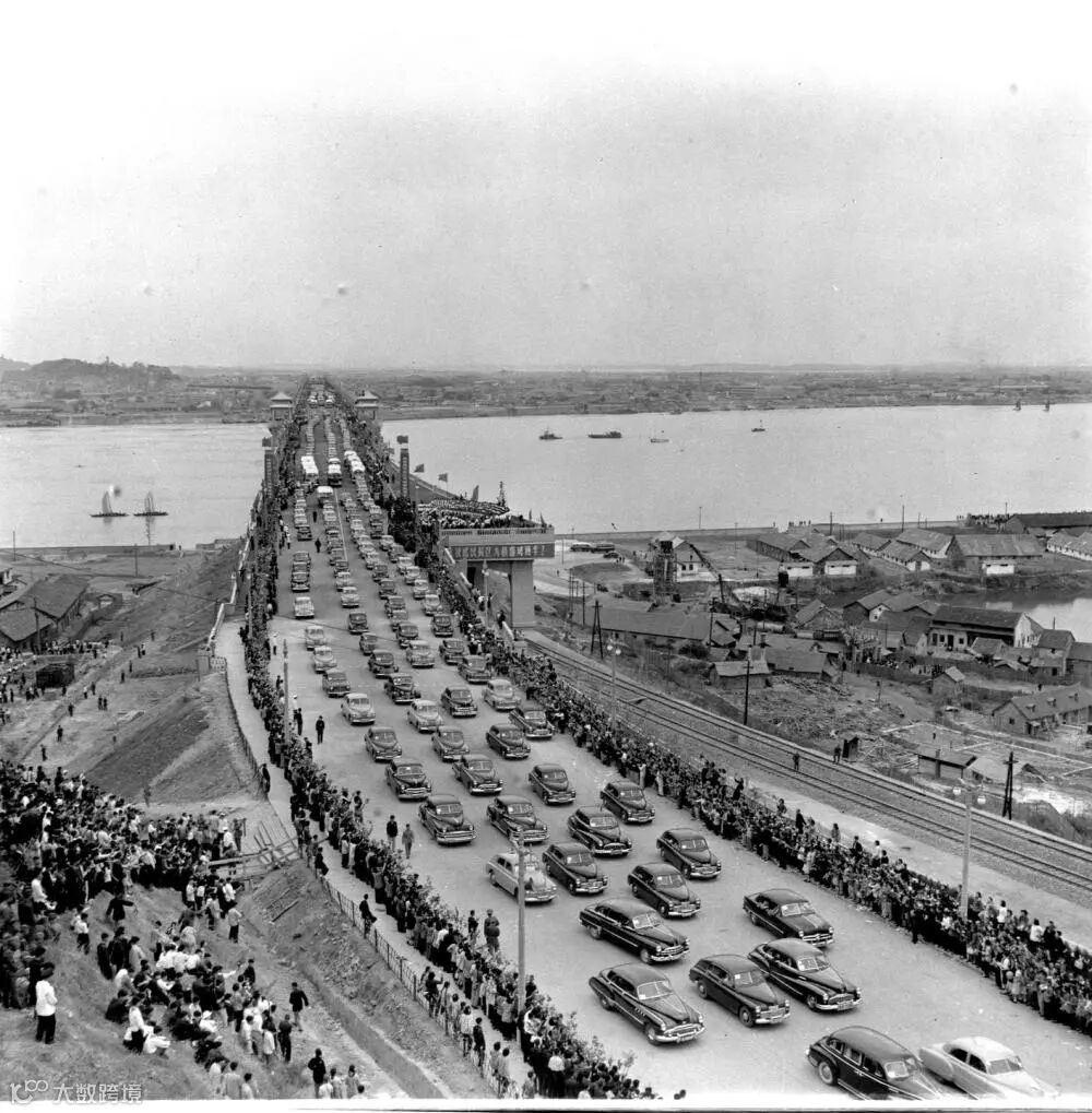 武汉长江大桥落成通车典礼于1957年10月15日举行,汽车浩浩荡荡通过大桥。(新华社记者郝纯一 摄)