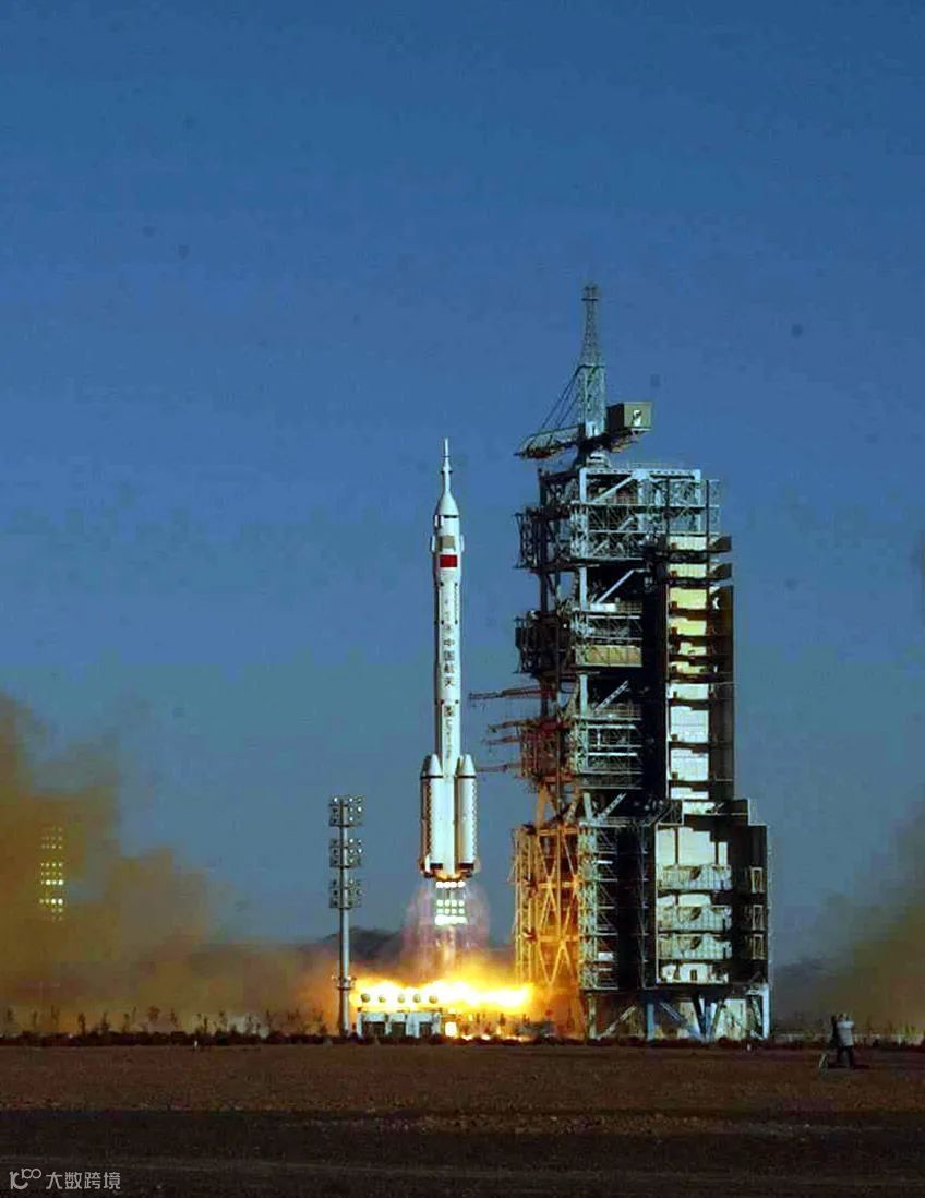 2003年10月15日,神舟五号载人航天飞船在酒泉卫星发射中心升空。(新华社发)