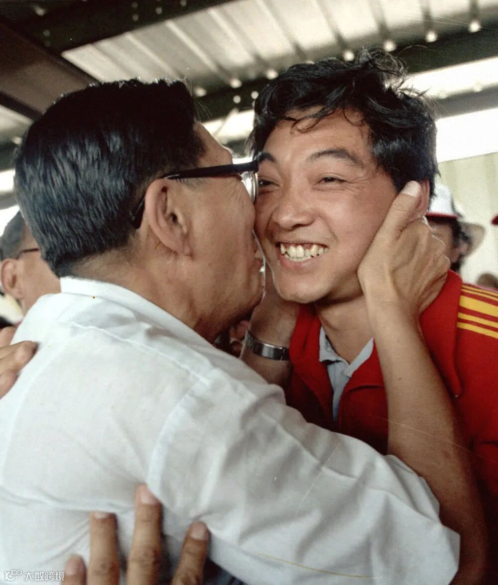 1984年7月29日,中国射击运动员许海峰(右)在美国洛杉矶举行的第23届夏季奥运会上夺冠,实现了中国体育史上奥运金牌“零的突破”。(新华社记者官天一 摄)