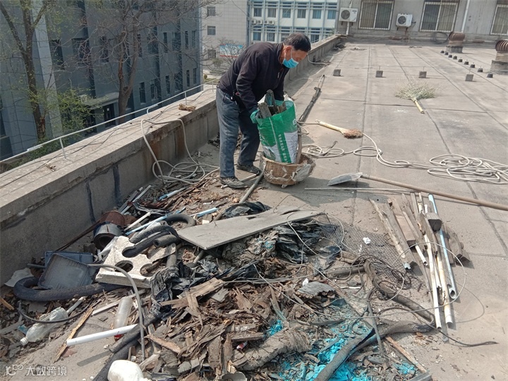 工作人员不畏辛苦、认真清理各类建筑垃圾、油漆桶、污泥、树叶及乱扔的杂物,对房顶进行了全面清扫。力争使各厂屋顶干净整洁美观,并侧重清理了屋顶积水、槽里淤泥,疏通了排水口,为下一步屋顶补漏打好了基础。