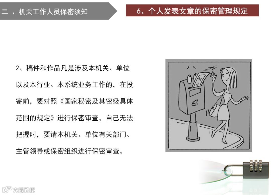 导读:要树立保密就是保国家安全、保家庭幸福、保个人前途的观念,时时小心、事事谨慎,树立做好保密工作的行为规范,养成