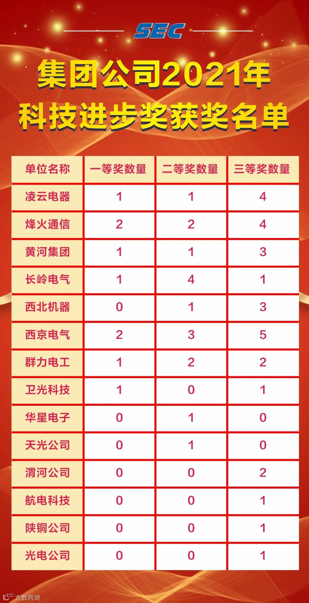 集团公司2021年科技进步奖评选历时1个多月,结果已经揭晓。此次评选共收到申报项目184个,在公开、公正、公平的原则下,经过形式审查、项目初审、最终评审的层层筛选,共评选出集团公司科技进步奖54项。其中一等奖8项、二等奖16项、三等奖30项。根据《陕西电子信息集团科技进步奖管理办法》(集团科字〔2019〕45号)的相关规定,集团公司对获得科技进步奖的项目将进行奖金奖励。