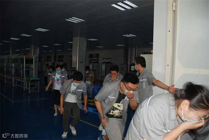 下午14:30,伴随着浓烟和哨声,消防疏散演练拉开了序幕。各班组在安全员的组织下,捂住口鼻,按照车间疏散路线快速、有序地向车间外安全地带疏散。到达后,带队主管安全人员立即清点人员,确保每位员工的安全。