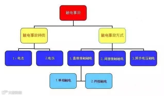人体不同部位接触不同电位则有电流流过为触电。分为“电击”与“电伤”两类。
