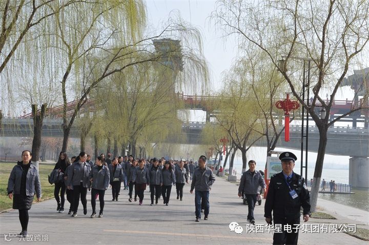 上午10点,参加活动的所有职工在古渡公园门口合影留念,并观看了开场舞。随着工会主席高晓曼一声号令,健步走活动正式开始。活动以古渡公园门口为起点,沿着咸阳湖边人行道经过渭河二号桥、清渭楼、古渡廊桥,最后到达统一广场。