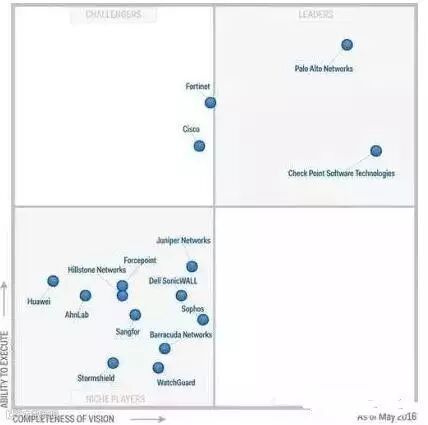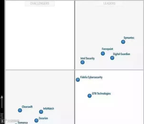 狭义的数据防泄漏产品就是指网络DLP,这是一个经久不衰的安全领域,16年的gartner排名如下: