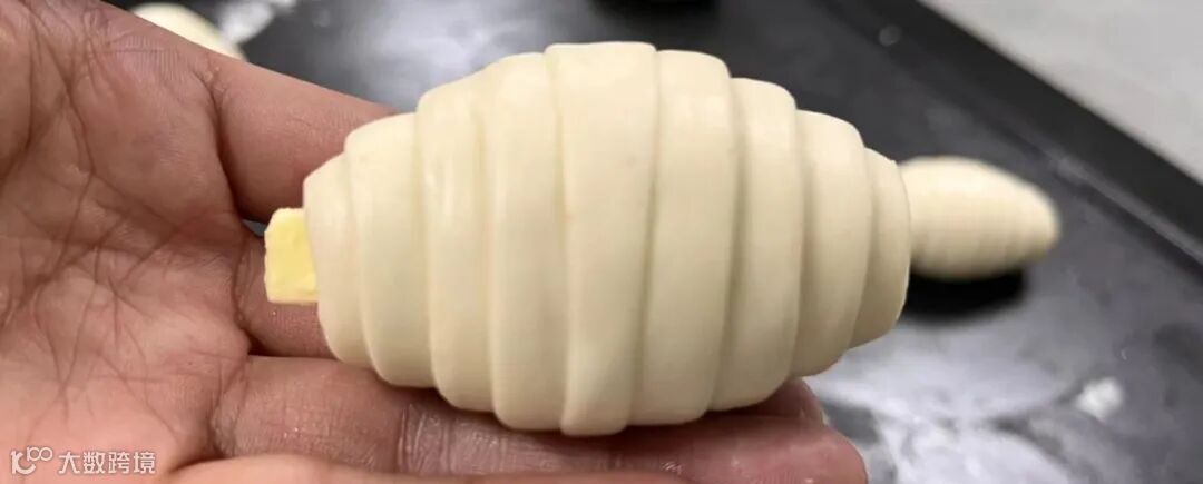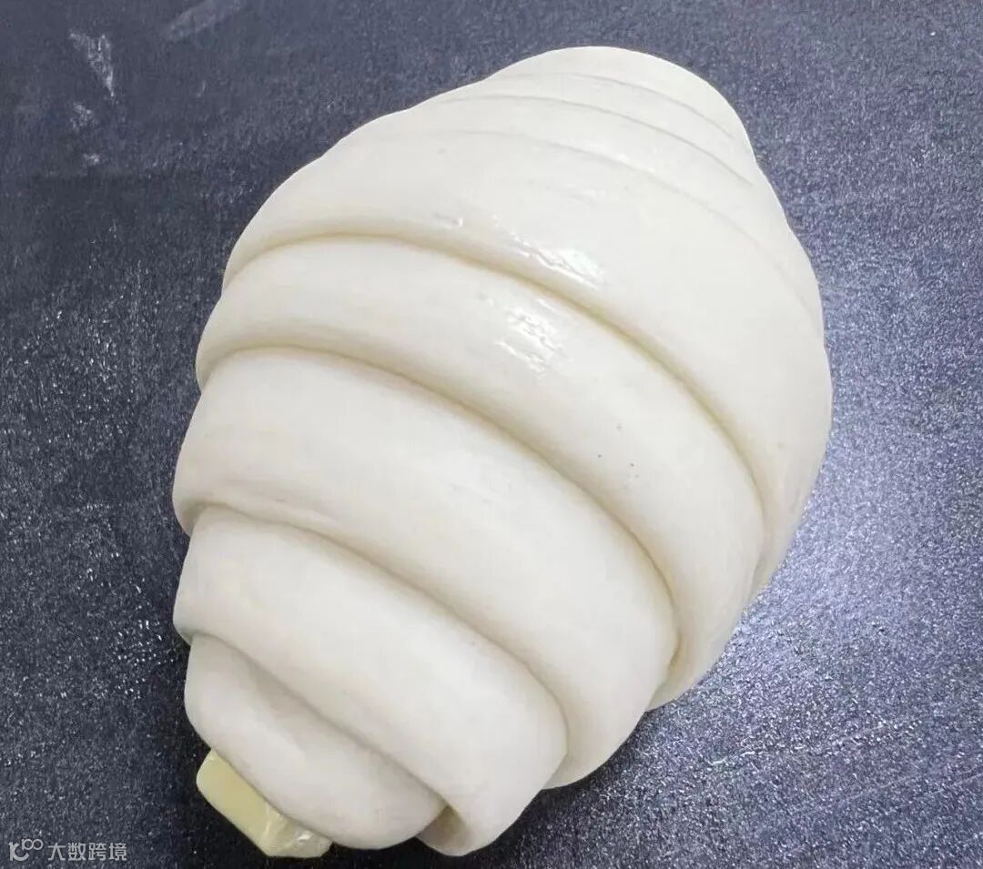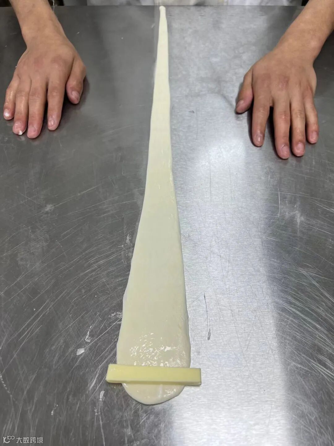 擀长50cm、宽7cm,表面抹脱模油或者抹黄油,卷起来 |