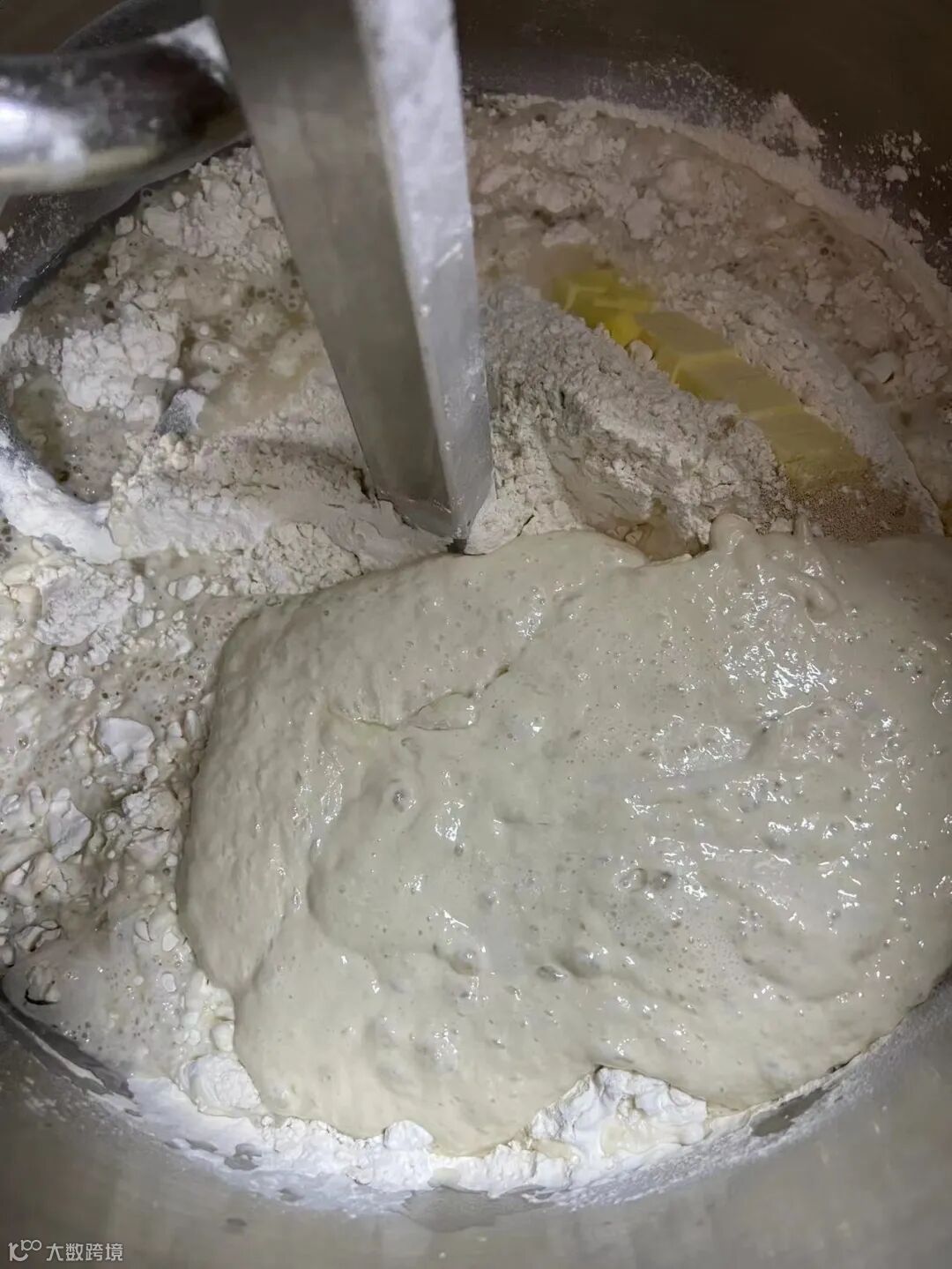 先将干酵母放入水中搅拌至融化再加入面粉搅拌至无干粉,在28度环境下发酵1小时转入冷藏隔夜使用 |