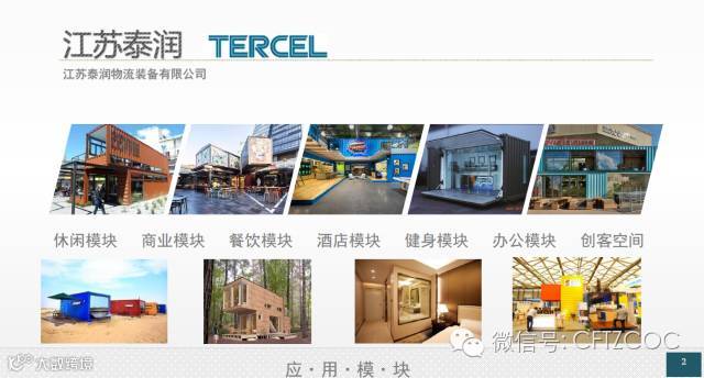 公司的母公司,有着深厚的班底支持,泰润早已把集装箱作为研究课题突破、布局并向集装箱模块建筑房屋成功转型,其生产的集装箱及装配专用于豪华游轮与军用设施等,防火、防潮、隔音、防震、保温、舒适及环保系数极高,满足各类搭建需求的同时,更能适用于对地形或者环境要求非常苛刻的情况。需要指出的是,它借助高科技、太阳能、风能机械动力的融合,让原本呆板冰冷的箱体模块,打上中国文化的烙印,向全球输送传播瑰丽的中华建筑文化。同时,张惠明董事长强调:“泰润企业卖的不仅是产品,更是有责任把颇具中国元素的建筑风格带到世界各国,将中国文化植入到各个角落,让他们更加认识中国、热爱中国。”据了解,通过中国自由贸易商协会联盟新型模块化集成建筑委员会与FTZCOC公众
