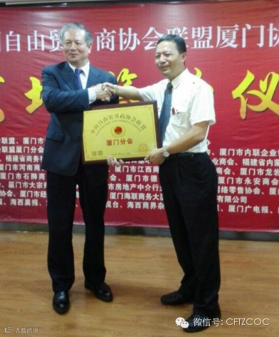 (中国自由贸易商协会联盟联席主席张福美对厦门分会授牌)