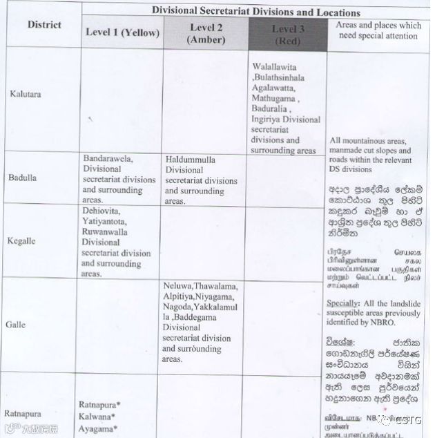【2018年10月9日CSTG集团斯里兰卡子公司报道】(通讯员秦佳楠)据斯里兰卡媒体10月9日报道,由于天气恶劣,国家建筑研究组织(NBRO)已向五个地区发布了山体滑坡警告。该滑坡警告涉及拉特纳普勒(Ratnapura),卡卢特勒(Kalutara),加勒(Galle),巴杜勒(Badulla)和凯格勒(Kegalle)等城市的多个地区。
