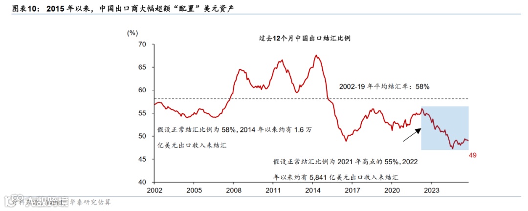 如果在有升值预期的情况下有管理地推动人民币逐步升值,反而可能吸引资本流入加速(或流出减少)。为避免汇率大幅升值拖累出口,历史上人民币通常会稳步升值,短期反而有利于推升汇率升值预期。考虑到出口商、金融机构、企业在购汇、结汇、资产配置等层面是实际意义上卖出人民币(超配外汇),升值预期可能会加速外汇流入,带动银行间流动性改善。